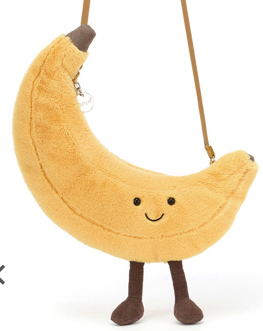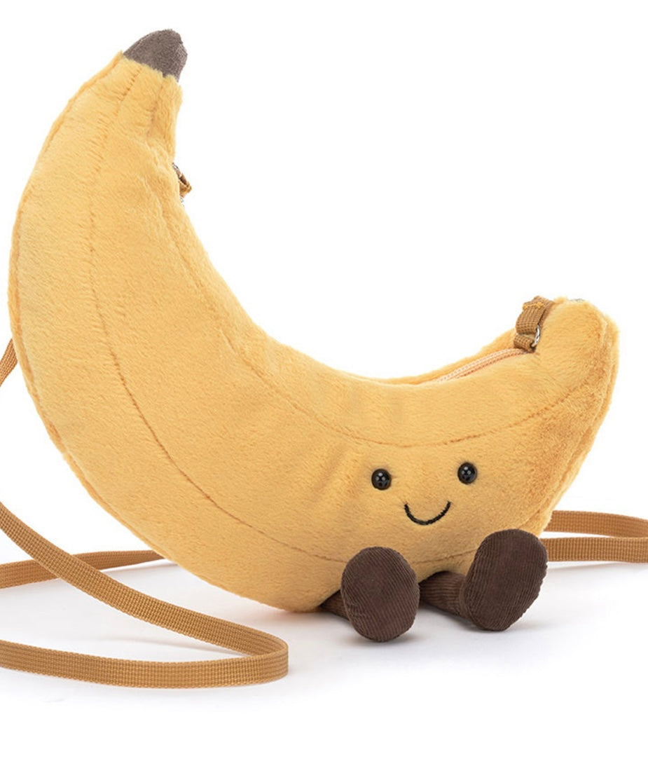 The Amuseables Banana Bag is the ultimate accessory pick for those looking to get their fashion five a day. Perfect for bits, bobs, and emergency snacks. As for the banana behind the bag? He’s a fruit that lives and breathes his craft. A regular at the Amuseables Laugh Shack, he spends his nights refining punchlines and his days perfecting his physical comedy (though some routines are more bruising than others). His latest project? A sitcom about a struggling comedian trying to make it in the fruit bowl. It’s very niche, but he’s certain it just needs the right audience.