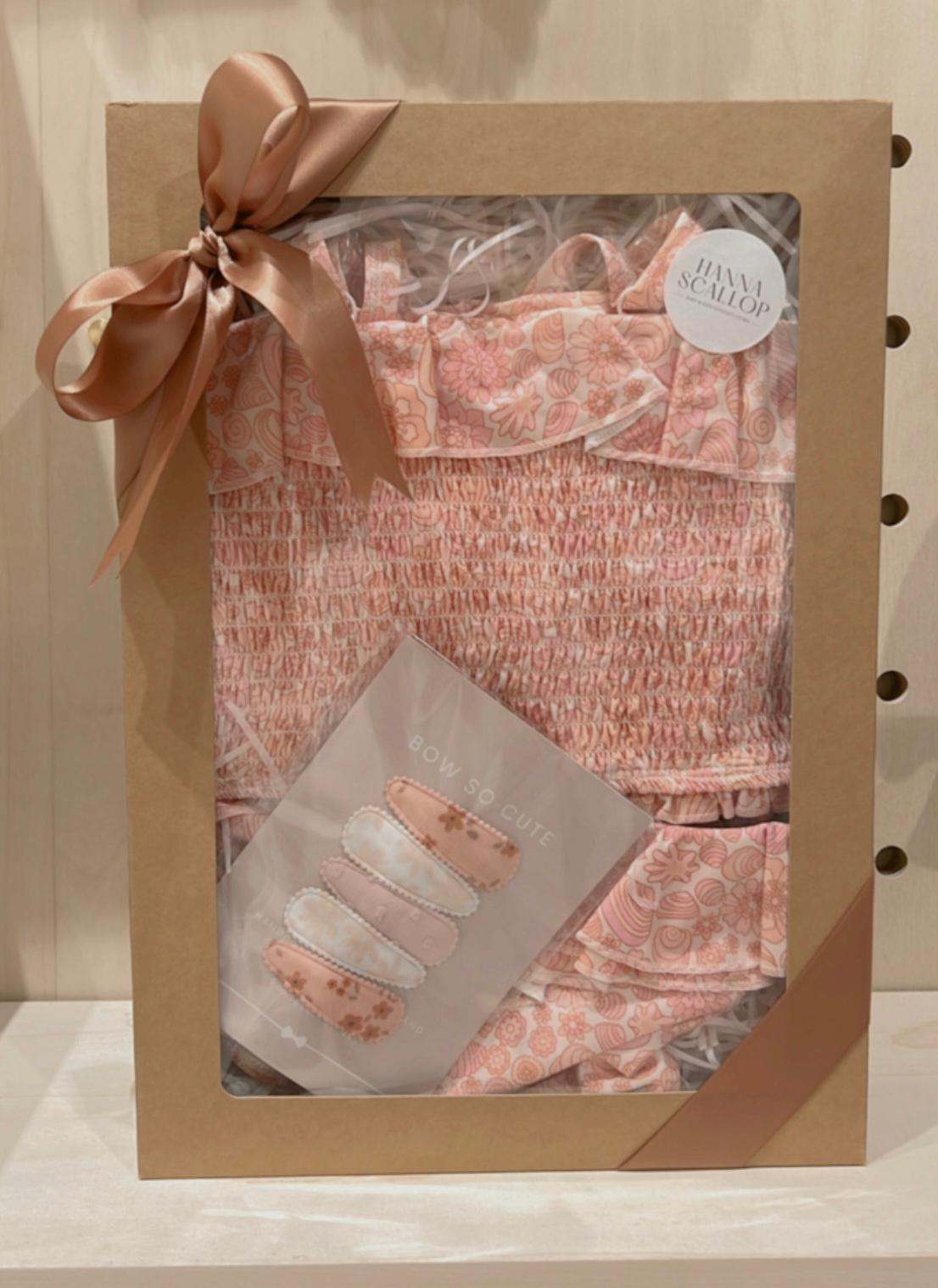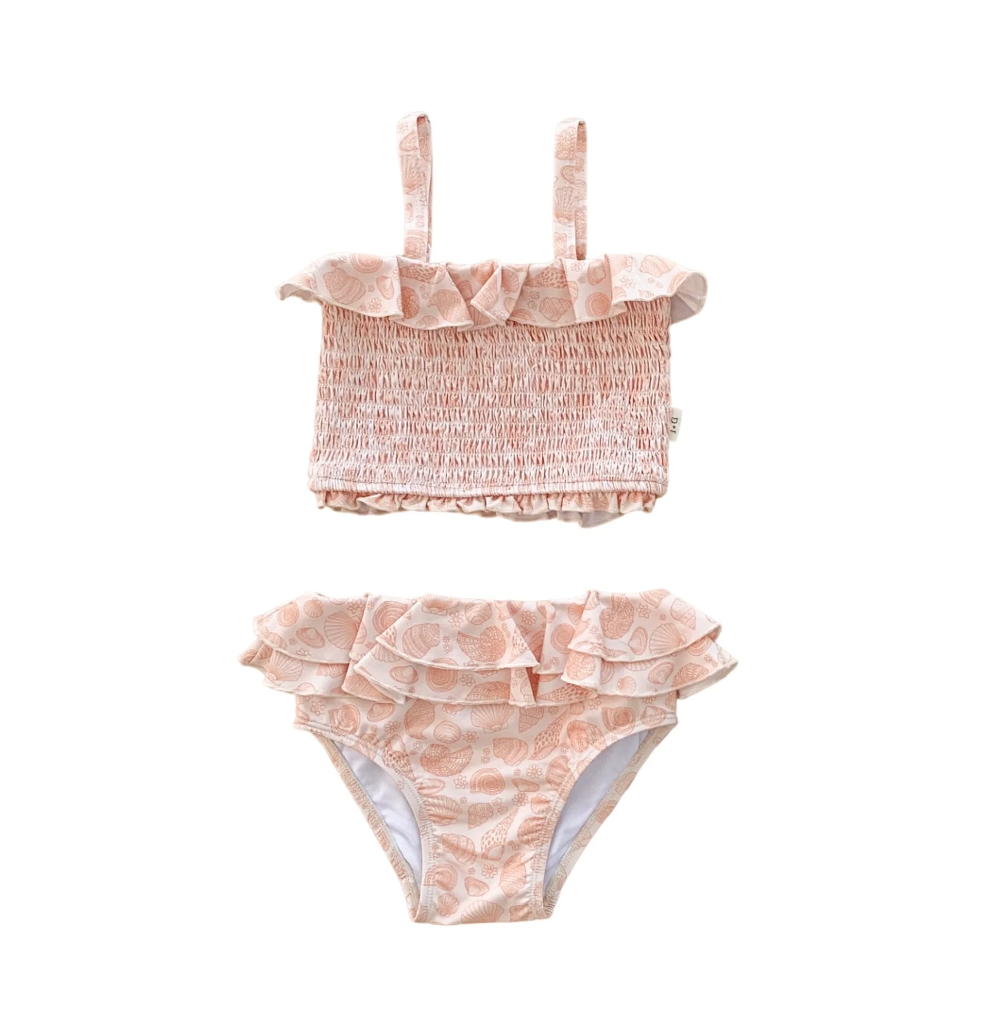 - India & Grace - Shirred Two Piece Swimsuit: Retro Seashell (Size 5)