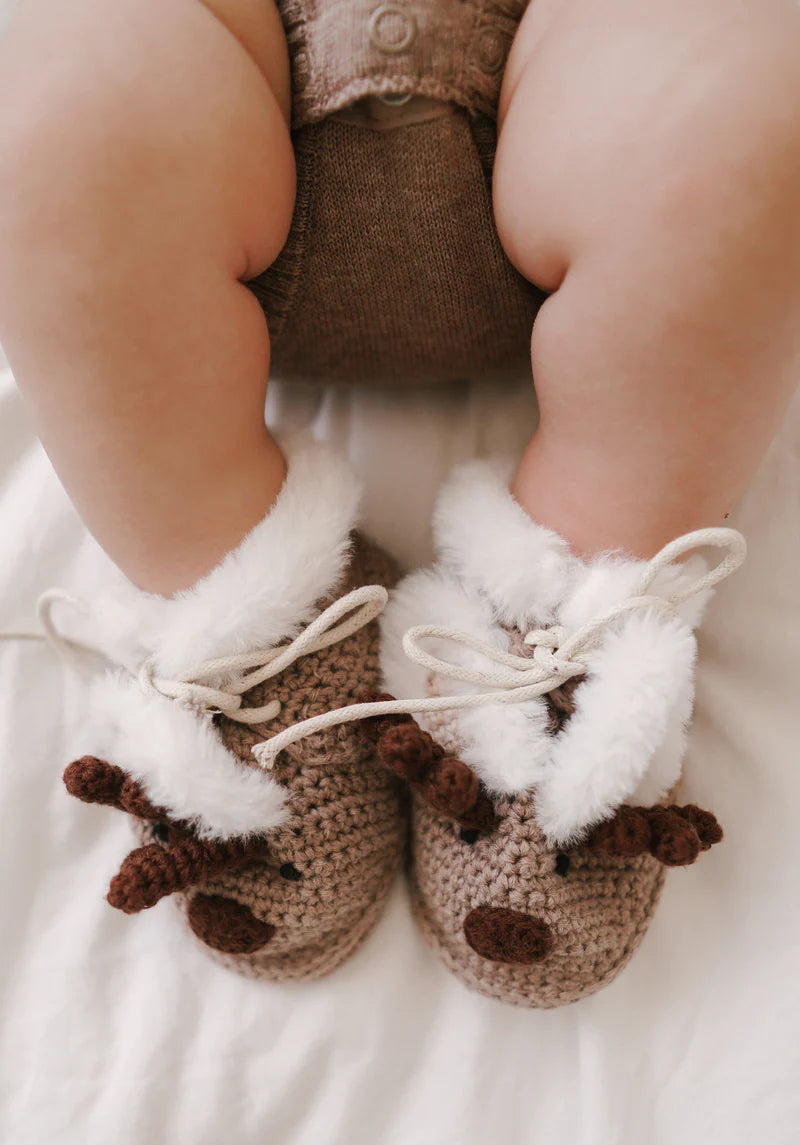 Our new Knitted Booties are all cute, all comfortable and made with little babies in mind. Keep their feet warm and their temperature regulated in our cutest booties ever. Now in a Christmas version with Reindeer ears and antlers for all those who celebrate!