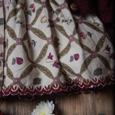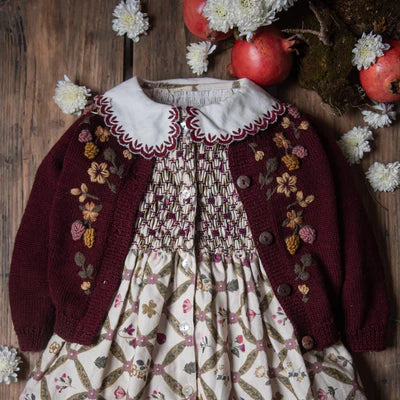 The collar has a wonderful shape and the entire dress is embellished with our hand painted print that has the perfect floral details.