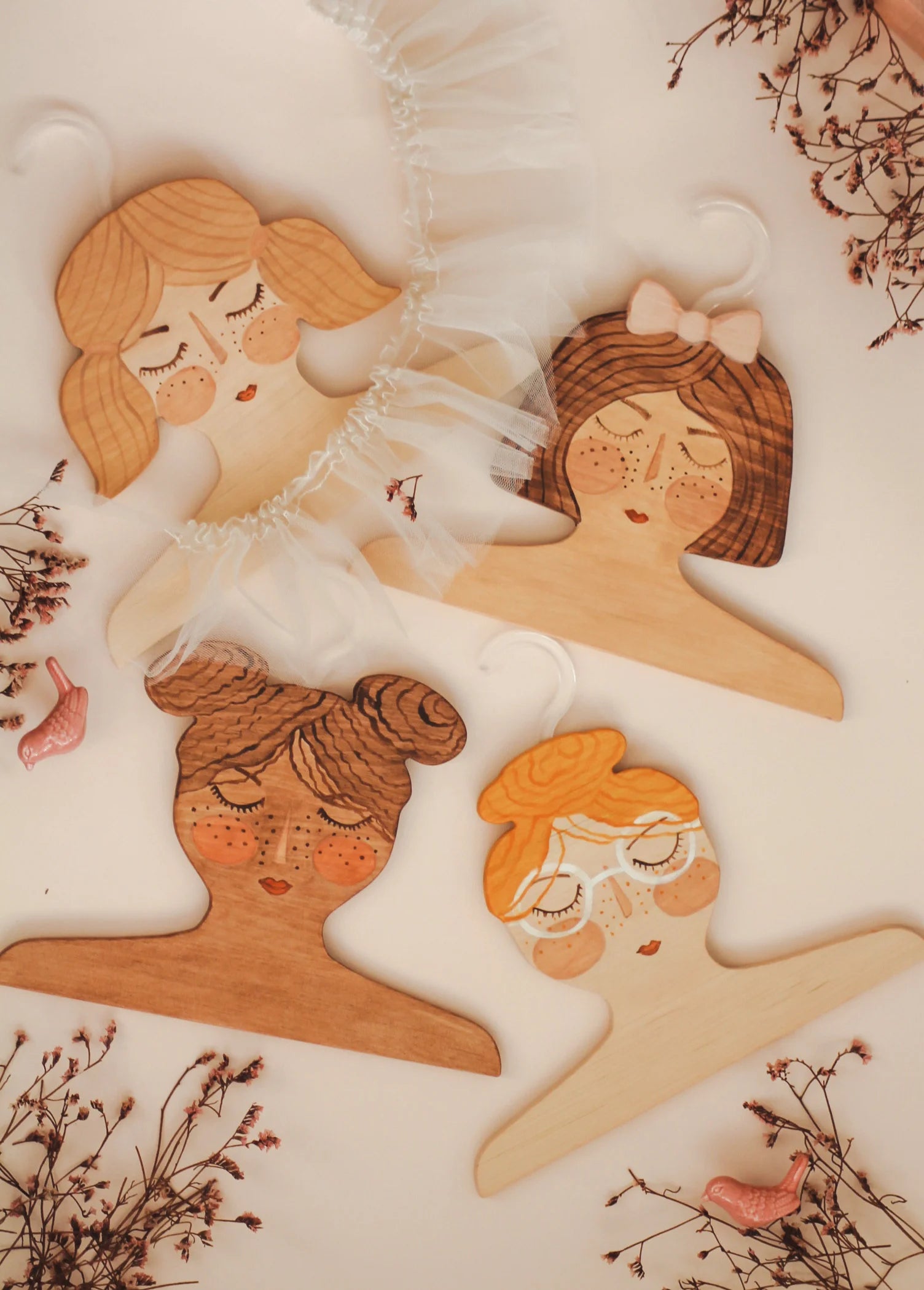 The hangers are made of cedar, carefully sanded and hand painted with child-safe paints. Size 25 cm, shoulder width and height about 20 cm.