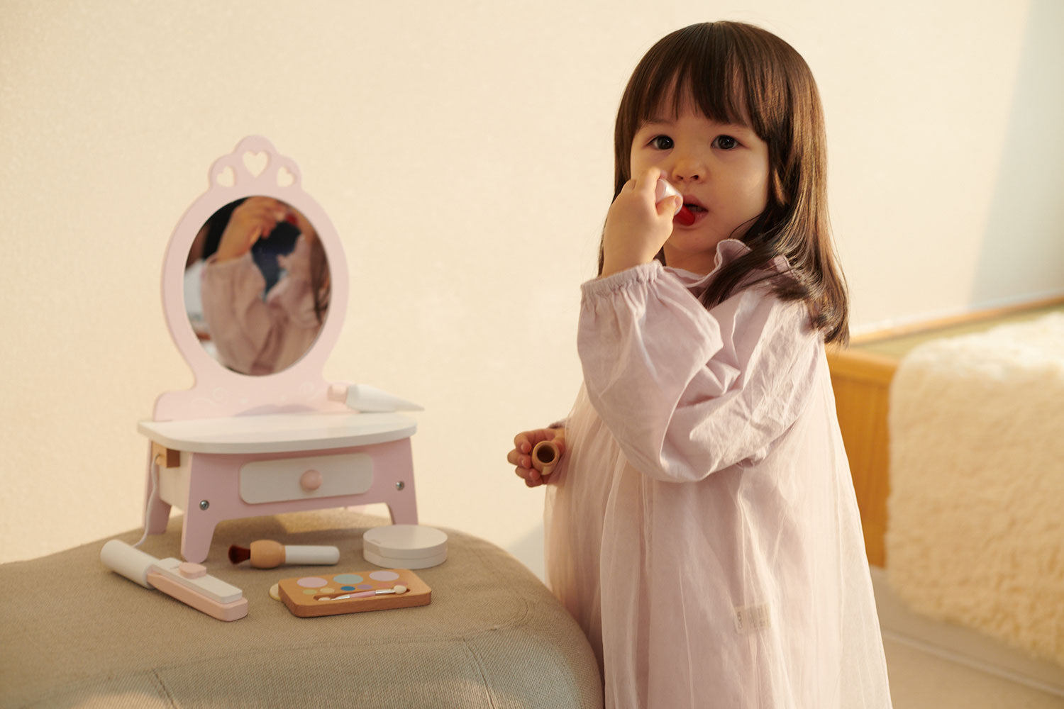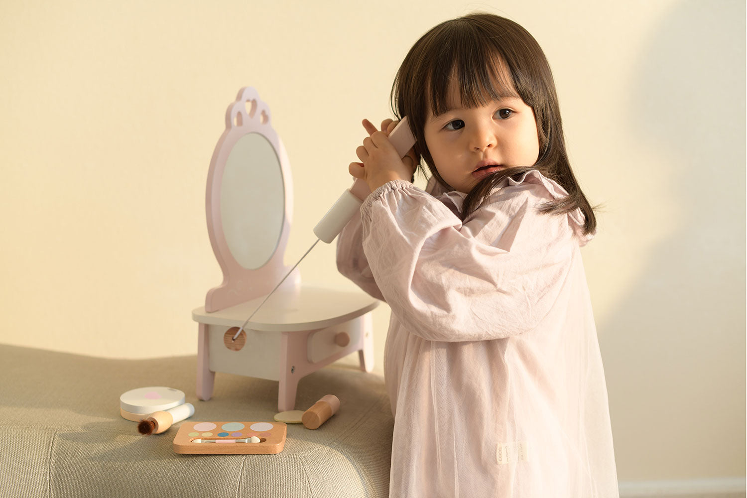 Every little girl wants her own dresser. This dresser includes comb, lipstick, hair straightener, bracelet, ring, make-up brush, and powder puff. This variety offers them more play value. Children will enjoy doing the make-up and have fun.
