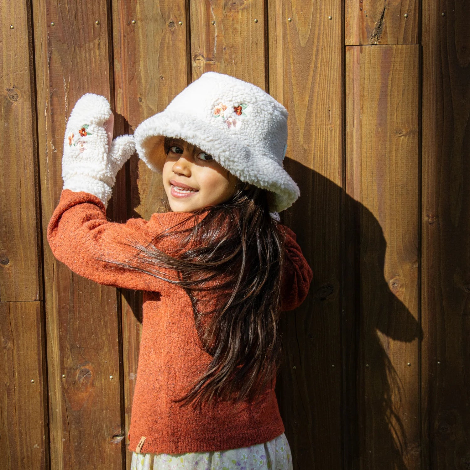Our super sweet bucket hat is designed in the cosiest Borg fabric and is fleece lined for extra comfort and warmth. With sweet floral embroidery this hat is the perfect addition to those cold countryside walks. Available in sizes 3-6 years and 7-10 years.
